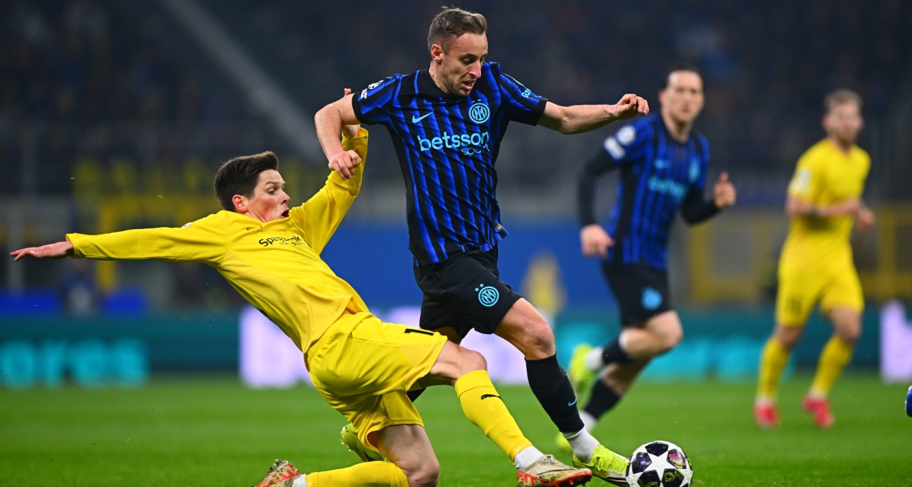 Интер, пак, во првиот дел не успеа да го отвори тимот на Бодо Глимт. Норвежаните успешно одолеваат на нападите на „нероазурите“. Фратези и Зиелински имаа шанси, но не успеаја, додека Евјен кај Бодо имаше шанси да ја шокира публиката на „Џузепе Меаца“. На Интер во вториот дел му треба да победи со два гола предност, за да ги задржи шансите за пласман меѓу најдобрите 16.