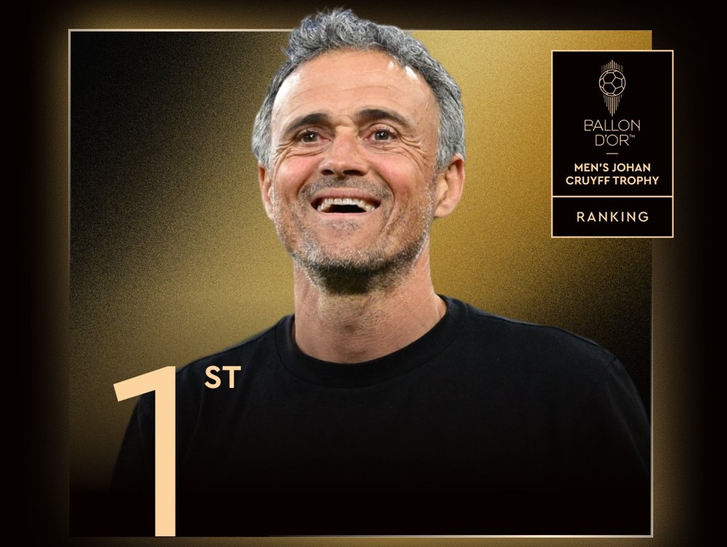 Тренерот на ПСЖ, Луис Енрике очекувано ја доби наградата за најдобар тренер на годината на 69. церемонија во изборот за Златната топка на француски „Л’Екип“.