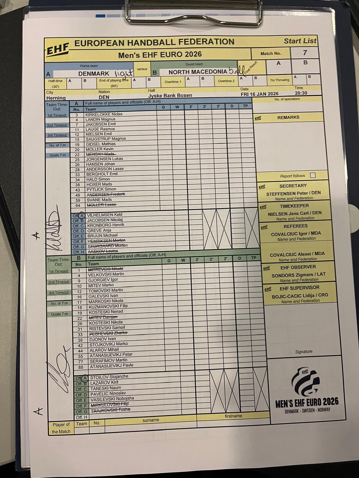 Ракометната репрезентација на Македонија за еден час ќе ја предизвика Данска во првиот натпревар од Европското првенство 2026 година.