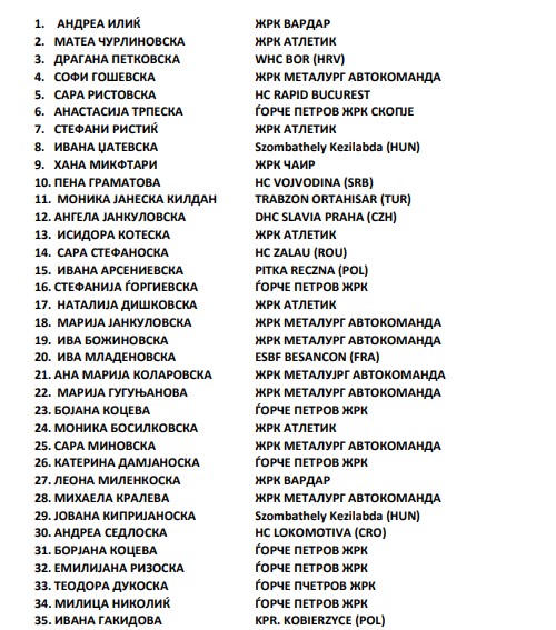 Селекторот на женската сениорска ракометна репрезентација на Македонија Кристијан Грчевски го објави поширокиот список на ракометарки повикани за подготовка и настап за претстојните квалификациски натпревари со репрезентацијата на Германија и Словенија во рамки на квалификациите за пласман на ЕП 2026 година.