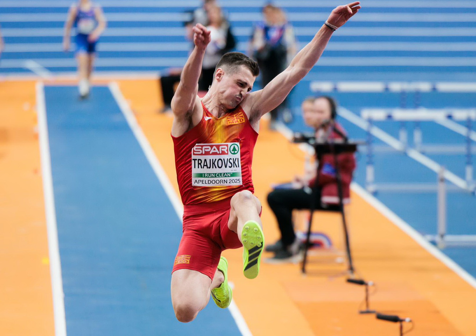 Андреас Трајковски го освои осмото место во скок во далечина на Европското првенство во атлетика во сала што се одржува во Апелдорн, Холандија, откако македонскиот атлетичар испиша историја станувајќи прв во историјата на овој спорт во нашата земја кој успеал да стигне до едно големо финале.