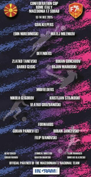 Национална селекција на Македонија Ф7, предводена од Горан Пандев и бројни поранешни македонски репрезентативци, за првпат во својата историја ќе учествува на престижниот меѓународен турнир – Купот на Конфедерациите кој ќе се одржи во Рим, Италија, на 13 и 14 декември.