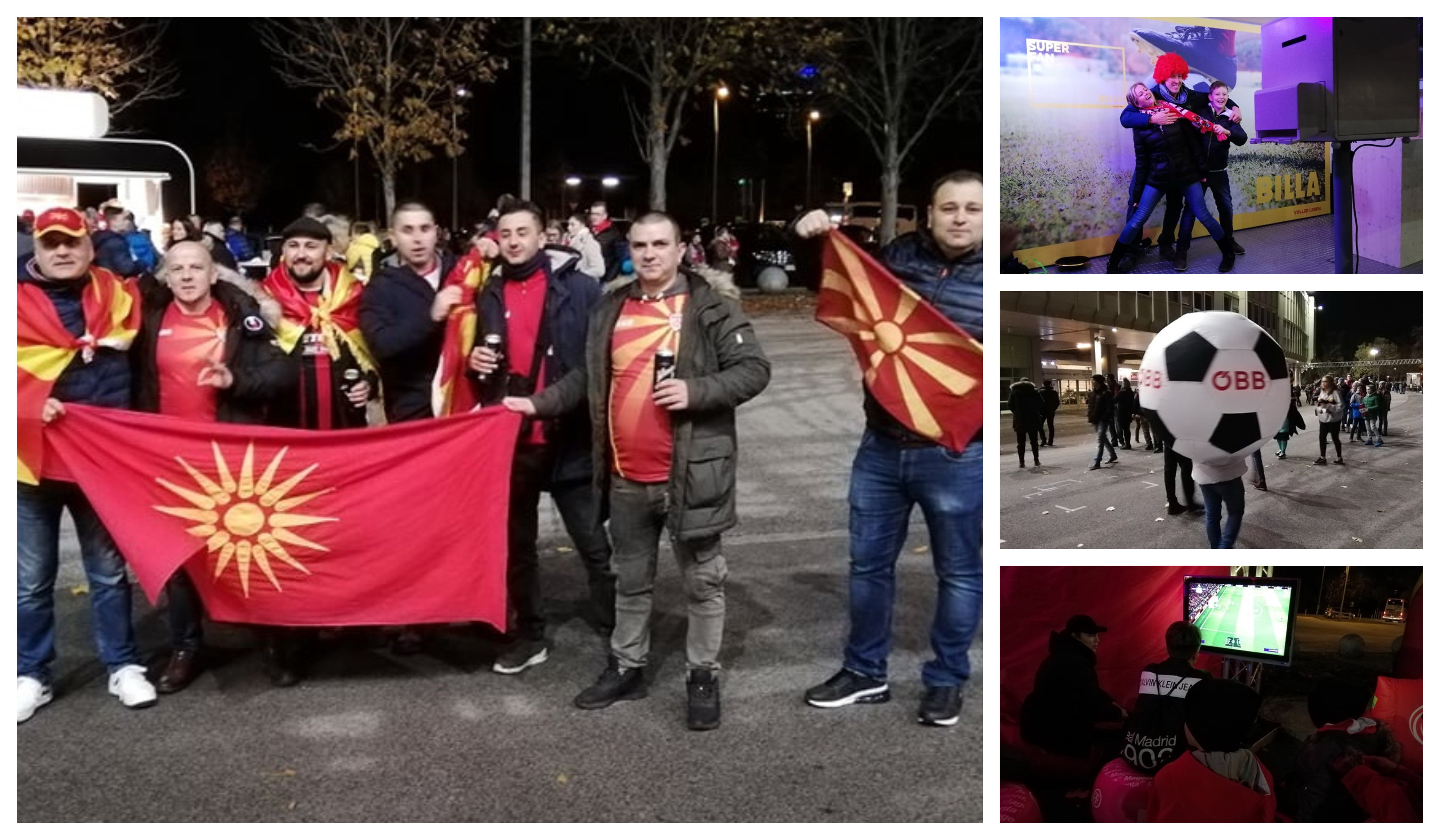 Околу 500 македонски фанови се очекува да бидат присутни на најголемиот австриски стадион. И пред самиот натпревар одлично е расположението меѓу македонските навивачи, како и она на Австријците кои подготвиле разновидни атрактивни фан-зони за своите поддржувачи пред почетокот на натпреварот. Во секој случај, факт е дека ќе биде интересно и на трибините на „Ернст Хапел“…
