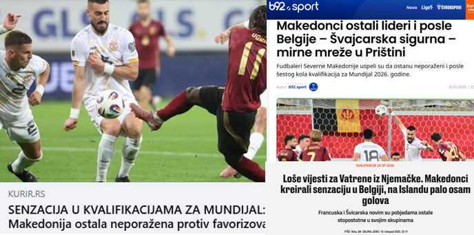 „Сензационален резултат на Македонците против моќната Белгија. Реми кое ги носи чекор плус кон Мундијал…“ – пишува српски „Курир“.