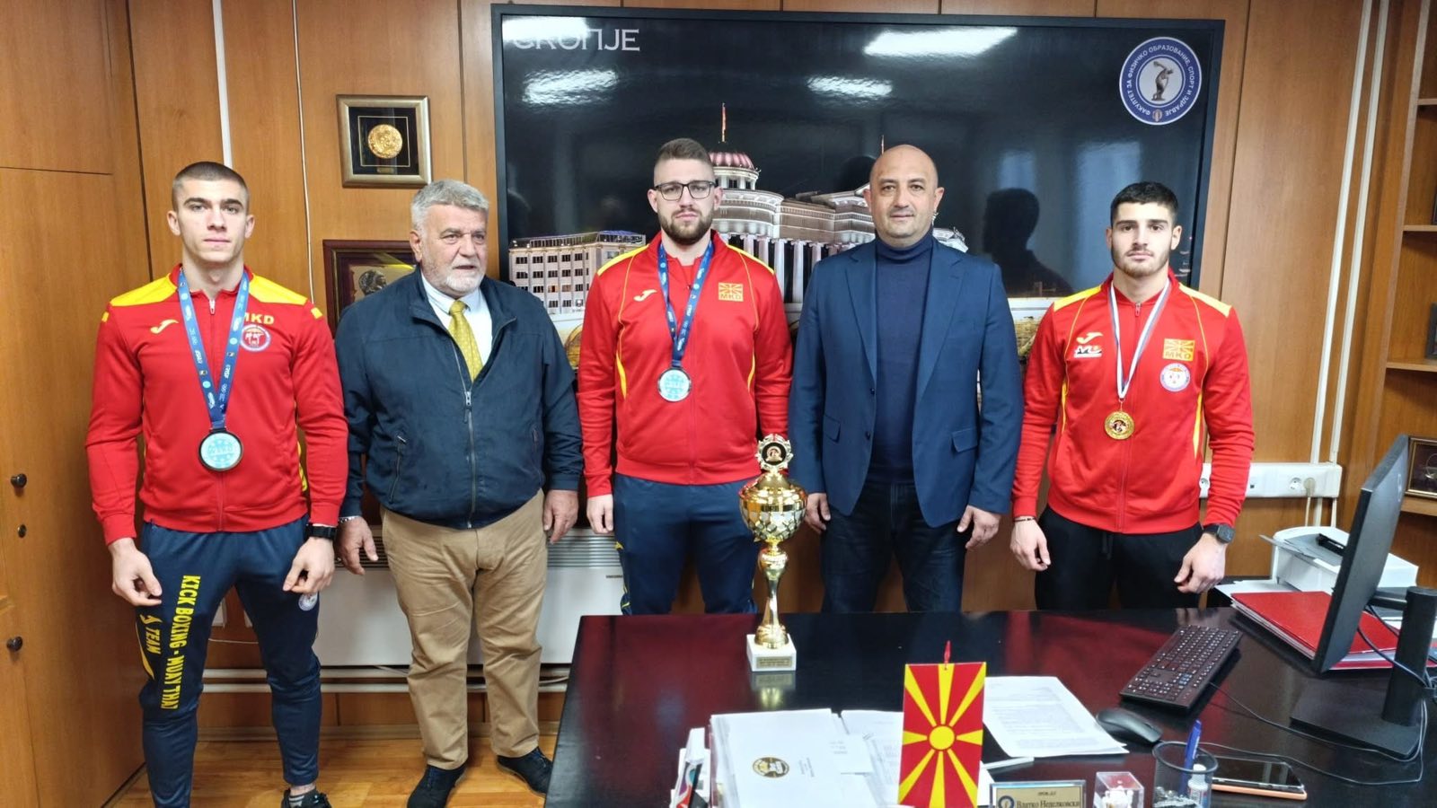 „Организиравме прием достоен за шампиони! Деканот на ФФОСЗ свечено ги прими нашите студенти – вистински спортски херои кои ја претставуваа Македонија на Светското првенство во кик-бокс кој се одржа во Абу Даби, настан од највисок ранг со учество на над 60 земји и повеќе од 2.000 врвни натпреварувачи од целиот свет. Во жестока и бескомпромисна конкуренција, нашите репрезентативци покажаа срце, знаење и карактер, притоа Стефан Михајловски освојувајќи сребрен, а Силвио Мировски бронзен медал, со што уште еднаш го истакнаа македонското знаме на светската спортска мапа. Тука беше и Максим Митровски од КБК Шампион кој се закити со златен медал и пехар за најдобар сениор на ринг во Лоу Кик дисциплината на Балканското првенство „Балкан Бест Фајтерс” – информираа од Факултетот за физичко образование, спорт и здравје.