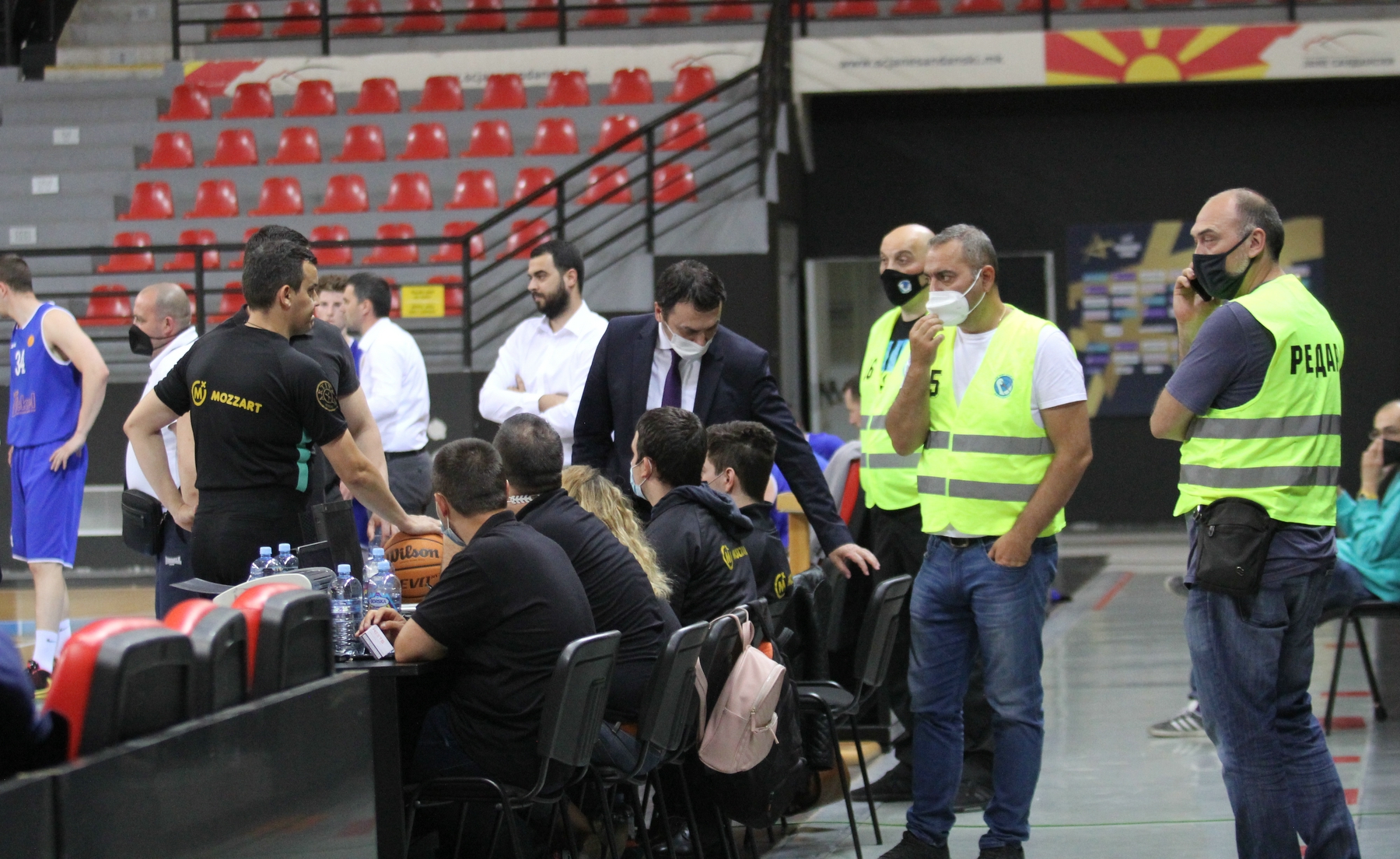 По краткиот прекин, натпреварот од финалето продолжи со тоа што дел од навивачите добија соодветно разместување на трибините во големата сала на СЦ „Јане Сандански“.
