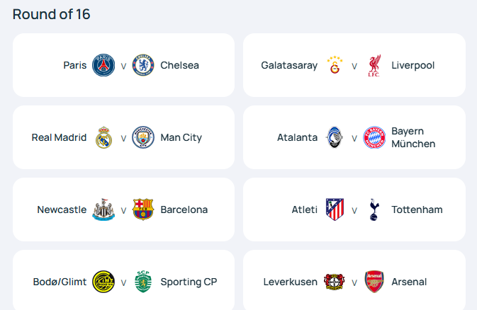 Денешната ждрепка за осминафиналето од Лигата на шампионите сакаше мега-дерби уште во осминафиналето од најквалитетното клупско европско натпреварување и пресметка меѓу гигантите Реал Мадрид и Манчестер сити.