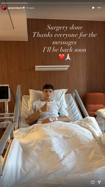 Дефанзивецот на Ливерпул, Џовани Леони, е опериран откако ги скина вкрстените лигаменти. 18-годишниот Италијанец ја заработи повредата на 23 септември на натпреварот од англискиот Лига куп против Саутемптон (2-1), што беше негово деби за клубот.
