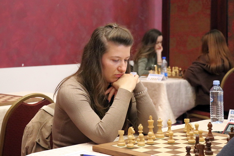 Во женска конкуренција настапуваат десет шахистки, кои ќе играат турнир според Бергеровиот систем од 9 кола, при што ЖФМ Моника Стојковска е прв носител со највисок рејтинг од 2.042 поени. Таа во првото коло, водејќи ги белите фигури, извојува многу значајна, ефектна победа против директната конкурентка во борбата за нова титула, второрангираната Ивана Манова (1.928), принудувајќи ја да се предаде по 36 потези во нимцоиндиска одбрана. Леа Ефтовска, исто така членка на првата женска екипа на ШК Алкалоид и на државната репрезентација, по долга борба го подели поенот со Моника Жежовска.