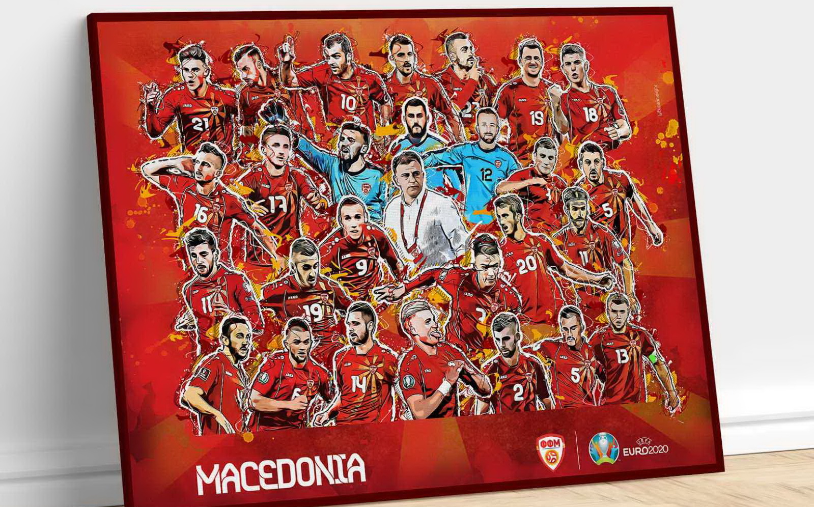 На сликата ги има фудбалерите на Македонија заедно со селекторот кои беа дел од Европското првенство. Станува збор за дигитален принт на платно, векторска илустрација во рамка која е единствен примерок.