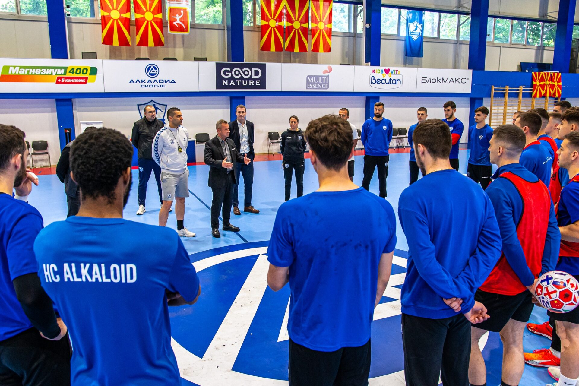 Првиот човек на компанијата „Алкалоид АД“, Живко Мукаетов, беше присутен на денешниот тренинг на ракометниот клуб што го носи истото име, за да им посака среќа на ракометарите во пресрет на неделното европско финале во Атина против тиммот на АЕК.