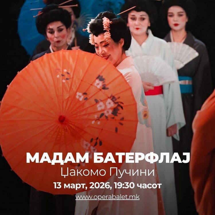 Видеолотарија Касинос Австрија продолжува да вложува во развојот на музичката и културната сцена во земјава. Како партнер на програмата на Национаната опера и балет, со задоволство споделуваме дека вечерва, петок 13.03.2026 во 19:30 ќе биде изведена „Мадам Батерфлај“ од Џакомо Пучини. Станува збор за едно од најемотивните и најизведувани дела на светскиот оперски репертоар.