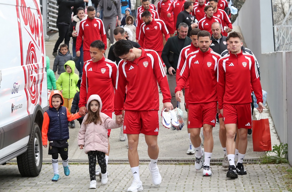 Најмладите им посакаа среќа на фудбалерите пред Данска (ФОТОГАЛЕРИЈА)