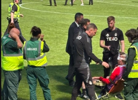 По завршување на мечот, стотици навивачи на Данди втрчаа на теренот за да го прослават триумфот, а од трибината каде што беа гостинските фанови беше фрлено столче кое заврши директно во главата на гостинскиот играч Мекензи.