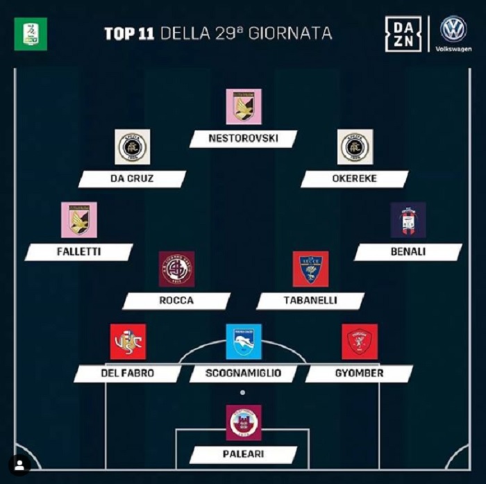 Македонскиот репрезентативец Илија Несторовски е избран во тимот на колото во Серија Б. Тој одигра одличен натпревар за Палермо во триумфот против Карпи (4-1). Напаѓачот беше стрелец на два гола и имаше една асистенција на натпреварот и го заслужи местото меѓу најдобрите 11 во Серија Б.