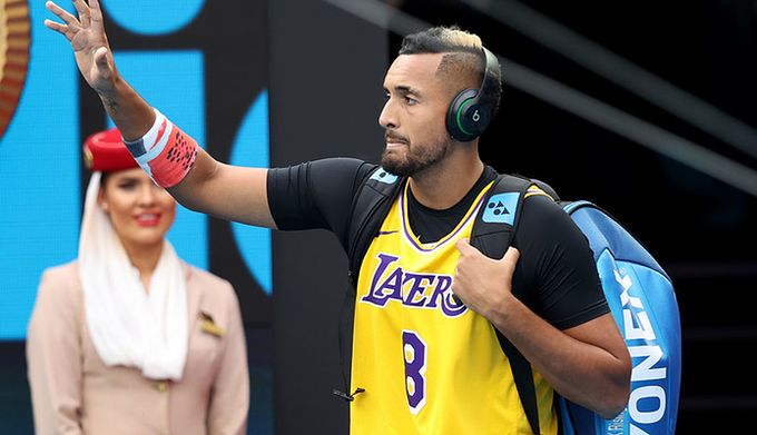 Коби Брајант беше спортски идол на Ник Кирјос, Австралиецот на првиот меч по трагичната смрт на кошаркарската легенда се појави во негов дрес од ЛА Лејкерс, а во меѓувреме отиде и чекор понапред за да го задржи Брајант во вечен спомен.