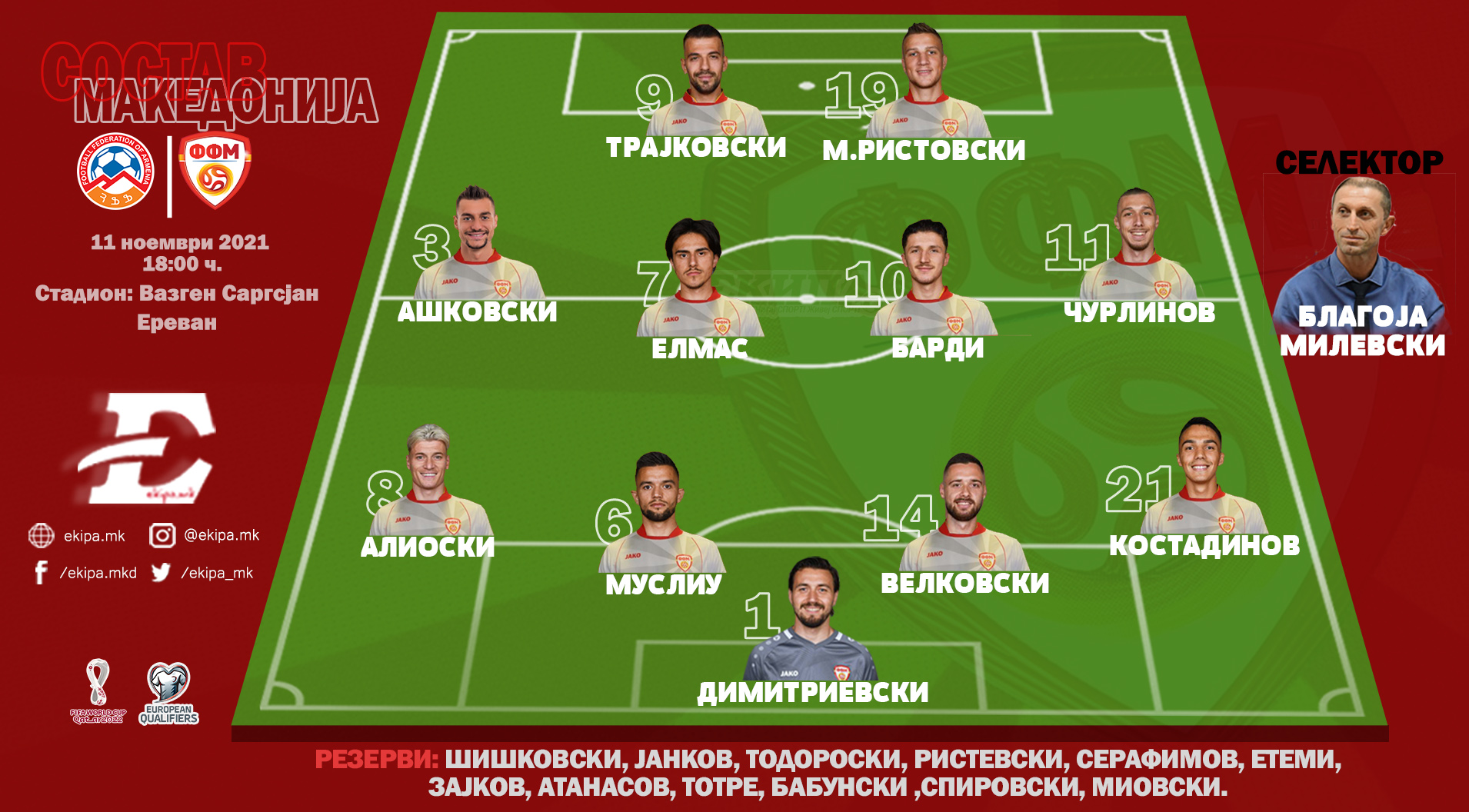 ОФИЦИЈАЛЕН СОСТАВ: Костадинов оди како десен бек, изненадувањето е Ашковски!