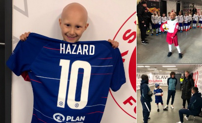 Фудбалерите на Челси, Еден Азар и Давид Луиз пред синоќешниот натпревар од Лигата на Европа против Славија во Прага од срце израдуваа детенце болно од рак подарувајќи му дрес од англискиот премиерлигаш… Специјален момент за малото детенце кое, како што самото изјави, подарок од кој никогаш нема да се оддели…
