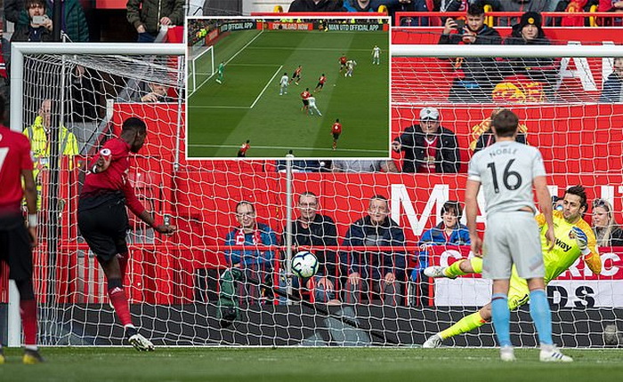 Францускиот репрезентативец Пол Погба со два гола од пенал донесе победа од 2-1 за Манчестер јунајтед против Вест Хем во 33. коло од Премиерлигата.