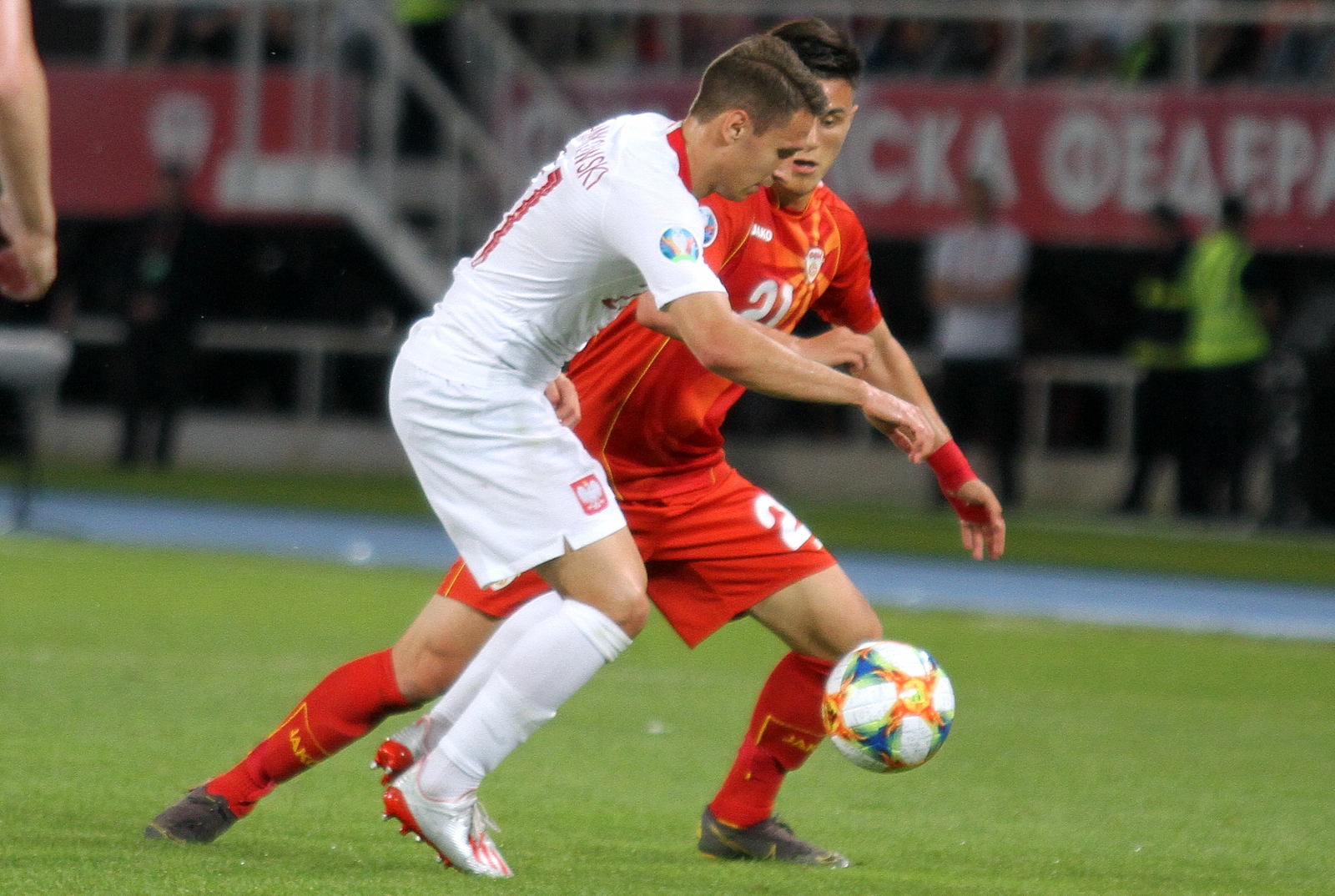 Македонија и Полска играат без голови по првото полувреме на квалификацискиот натпревар за ЕП 2020. На „Тодор Проески арена“, пред околу 25.000 гледачи, Македонија е можеби и подобар ривал, но и двете селекции не успеаја да изградат колосална можност за погодок. Полјаците и не делуваат така „страшно“ по првите 45 минути во Скопје.