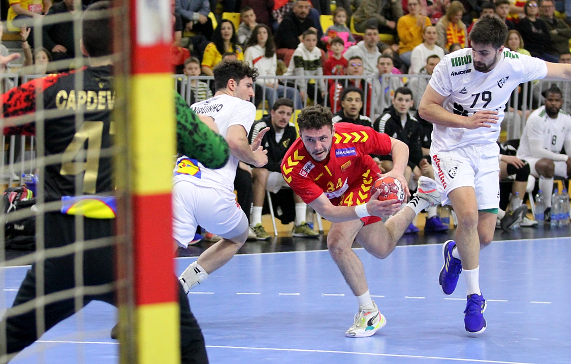 Македонија има негатива од четири гола по првото полувреме од гостувањето во Порто против Португалија (15-11), резултат што се должи на катастрофалниот финиш на полувремето на нашите ракометари. Имено, Македонија повеќе од 25 минути целосно парираше, во неколку ситуации имаше и водство, но во самиот финиш, и тоа по тајмаутот земен од нашиот селектор Лазаров при 10-11, следеше серија од 5-0 на домаќинот и убедливо водство на Португалците на паузата.