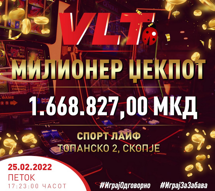 МИЛИОНЕР ЏЕКПОТ добивката на Видеолотарија Касинос Австрија оваа недела радуваше двапати. Добитната серија започна во Ченто каде МИЛИОНЕР ЏЕКПОТ на 22.02.2022 на И.М му донесе фантастични 1.578.893. Три дена потоа, беше регистриран новиот МИЛИОНЕР ЏЕКПОТ вреден неверојатни 1.668.827 денари. Овојпат добитникот С.И. се радуваше во Спортлајф во Скопје на 25.02.2022.