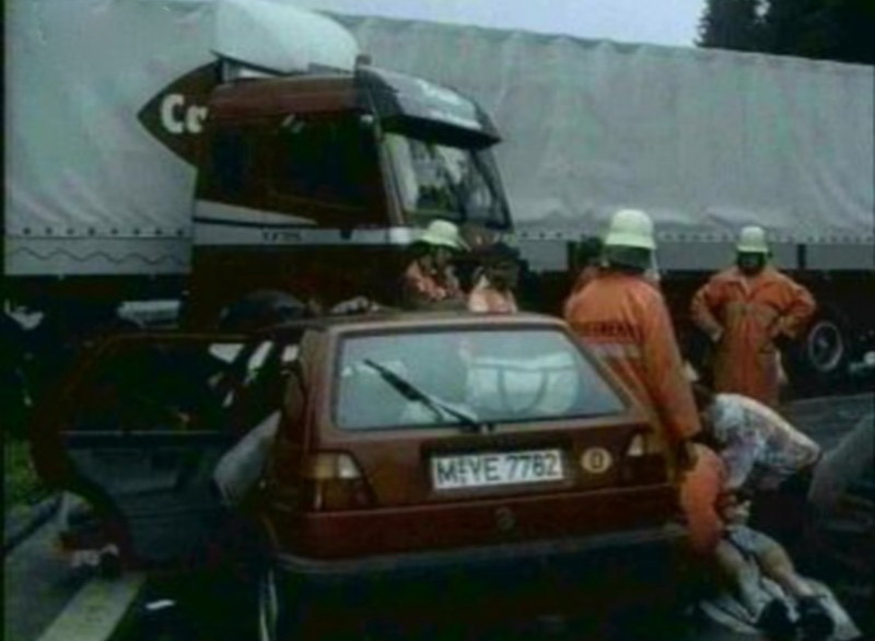 Околу 17:20 часот црвениот голф со полна брзина се забил во камион-цистерна кој бил на сред пат. Според полициските извештаи, возачот на камионот излегол од возилото и им сигнализирал на возачите на автомобилите кои доаѓале да ја намалат брзината затоа што камионот се излизгал. Но, за црвениот голф било прекасно.