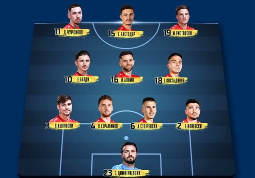 Во формацијата 4-3-3 во нападот ќе бидат Растодер, Чурлинов и Милан Ристовски, а веднаш зад нив во средниот ред со Барди, Алими и Костадинов.