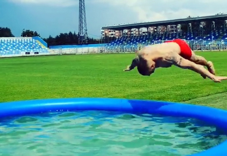Летните горештини Пинда одлучи да ги неутрализира и со разладување во монтажен базен поставен во градскиот стадион во Струмица. Скокови во вода наутро е добра забава, пред попладневниот тренинг на фудбалерите на Беласица кои во новата сезона повторно се враќаат во прволигашкото друштво…