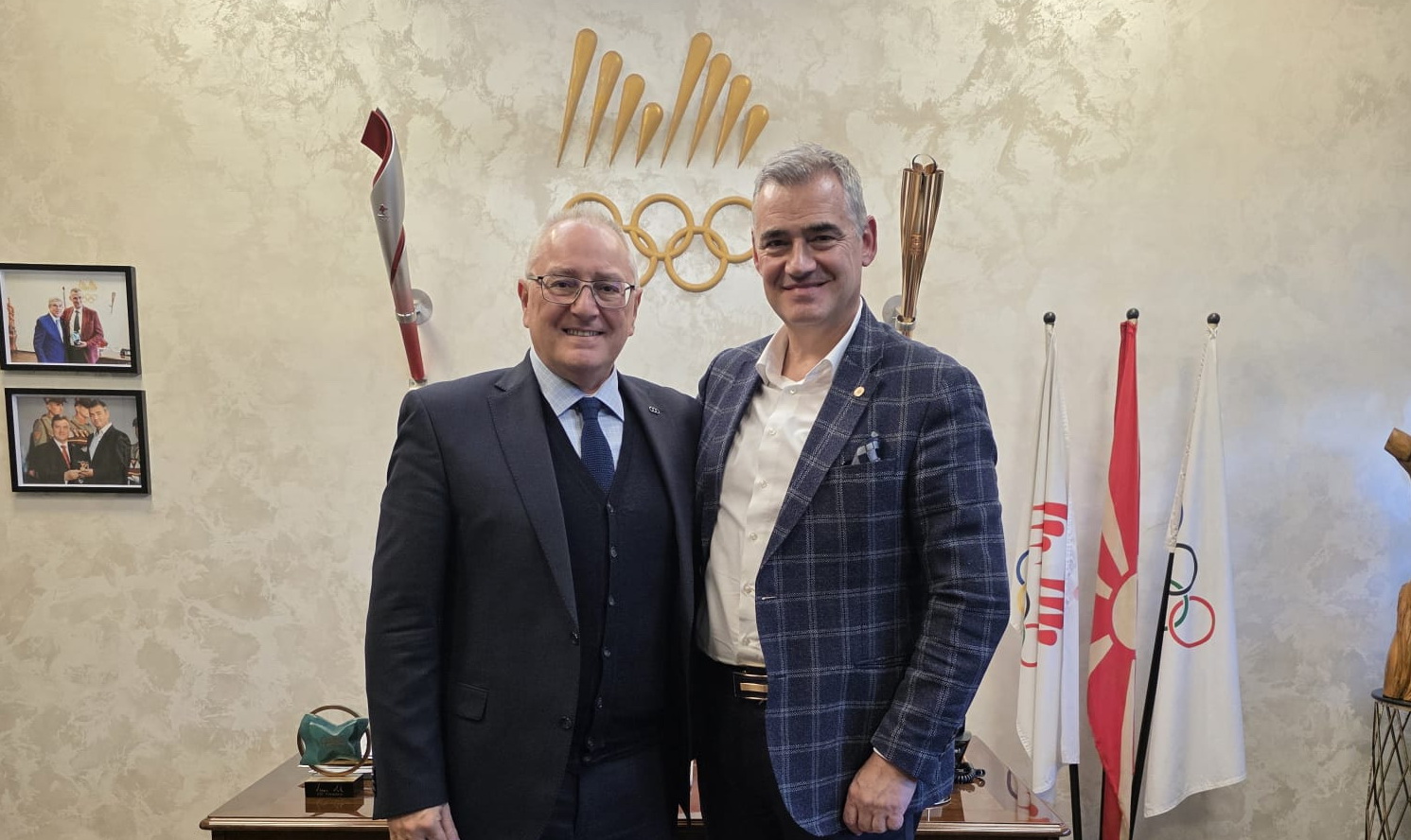 Претседателот на Олимпискиот комитет, Даниел Димевски, придружуван од Генералниот секретар Ѓорги Тасев и Раководителот на сектор спорт, Петар Спасеновски, оствари срдечна и работна средба со г-дин Јаковос Филипусис, Генерален секретар на Меѓународниот комитет на Медитеранските игри (ICMG).