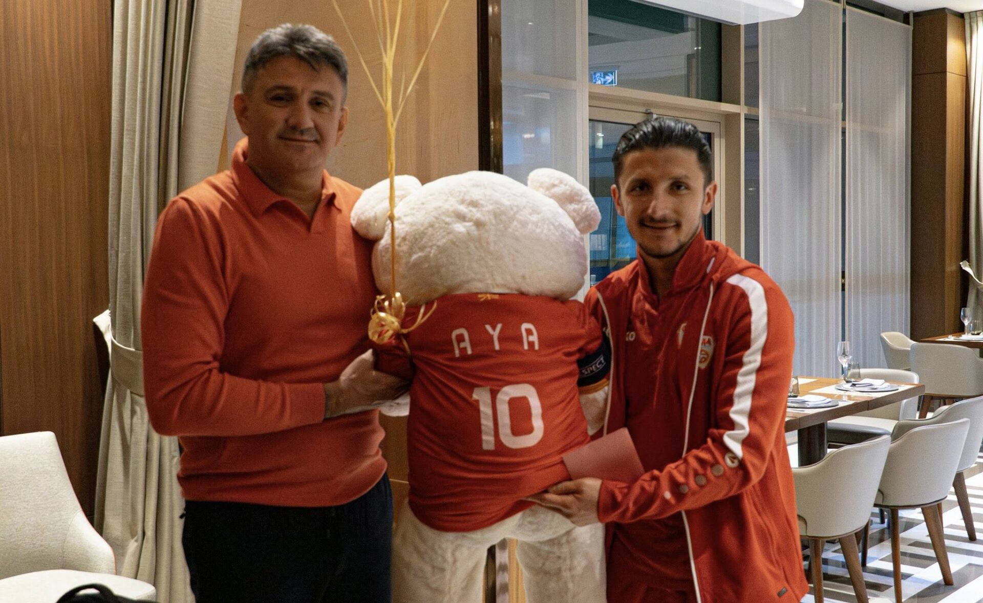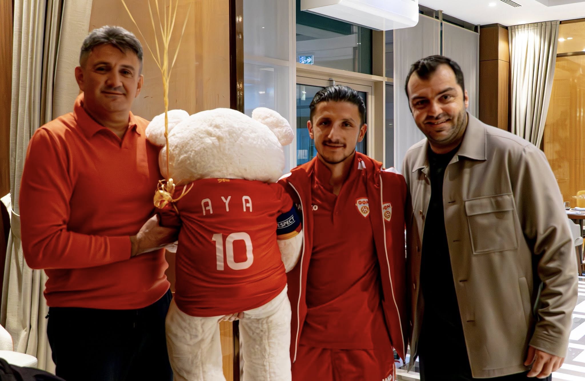 А, пред денешното заминување за Гент, каде што во петок ќе се одигра мечот со Белгија, Енис Барди беше изненаден и од претседателот на ФФМ, Масар Омерагиќ кој со посебен подарок ја честиташе приновата во семејството Барди.