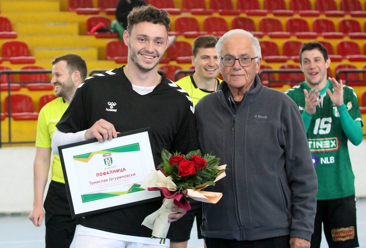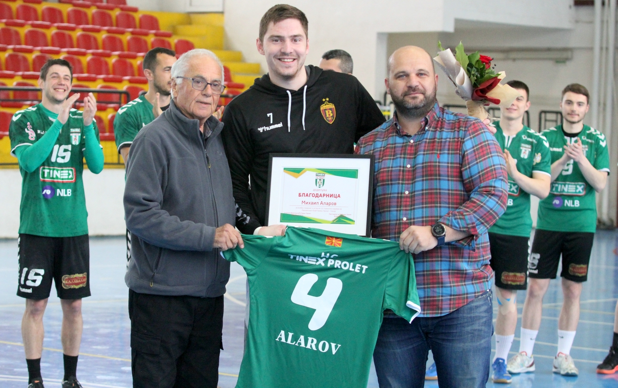 Раководството на РК Пролет го искористи дуелот со шампионот Вардар за да им додели специјални благодарници на Михаил Аларов и на Томи Јагуриновски, кои пред неколку месеци од Пролет направија трансфери во редовите на Вардар.