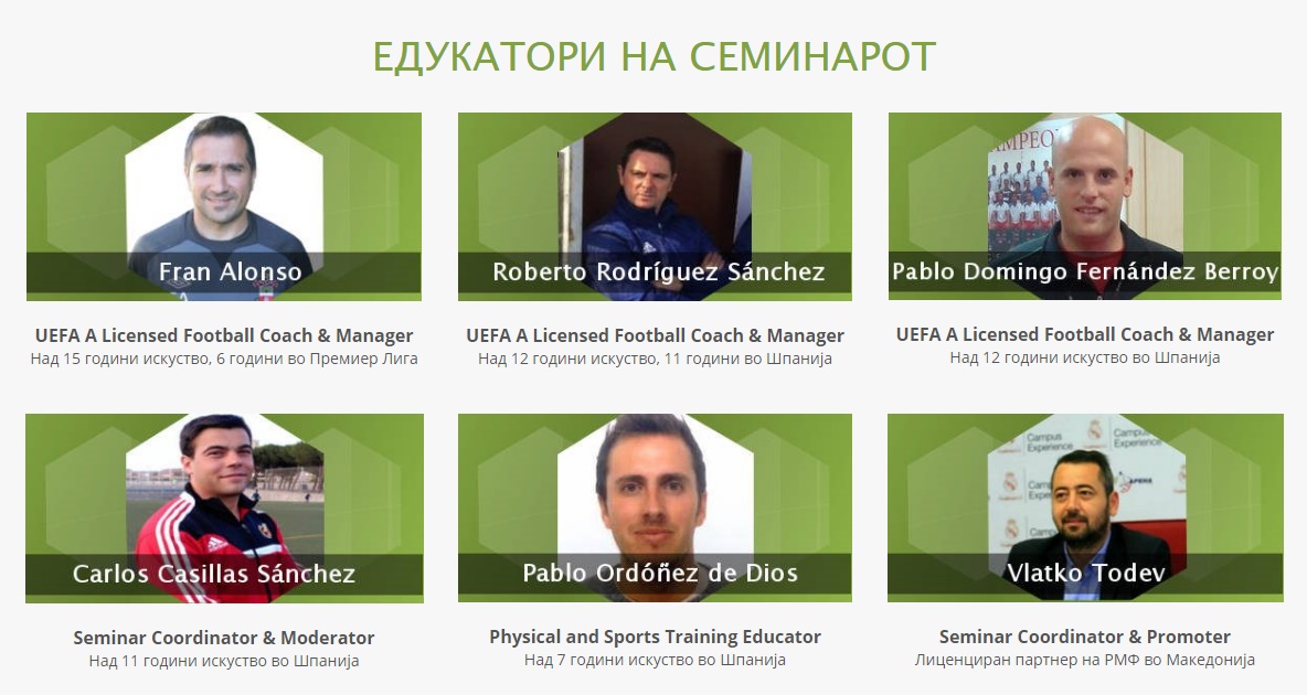 Главен предавач на семинарот ќе биде ФРАН АЛОНСО, тренер кој има 15 – годишно непроценливо искуство од кои шест години како дел од Премиер – лигата. Работеше во Саутемптон и во Евертон, беше прв асистент на Маурисио Покетино, Роналд Куман, Семи Ли и на Сем Алардајс. Огромно насобрано искуство од најквалитетната фудбалска лига во светот.