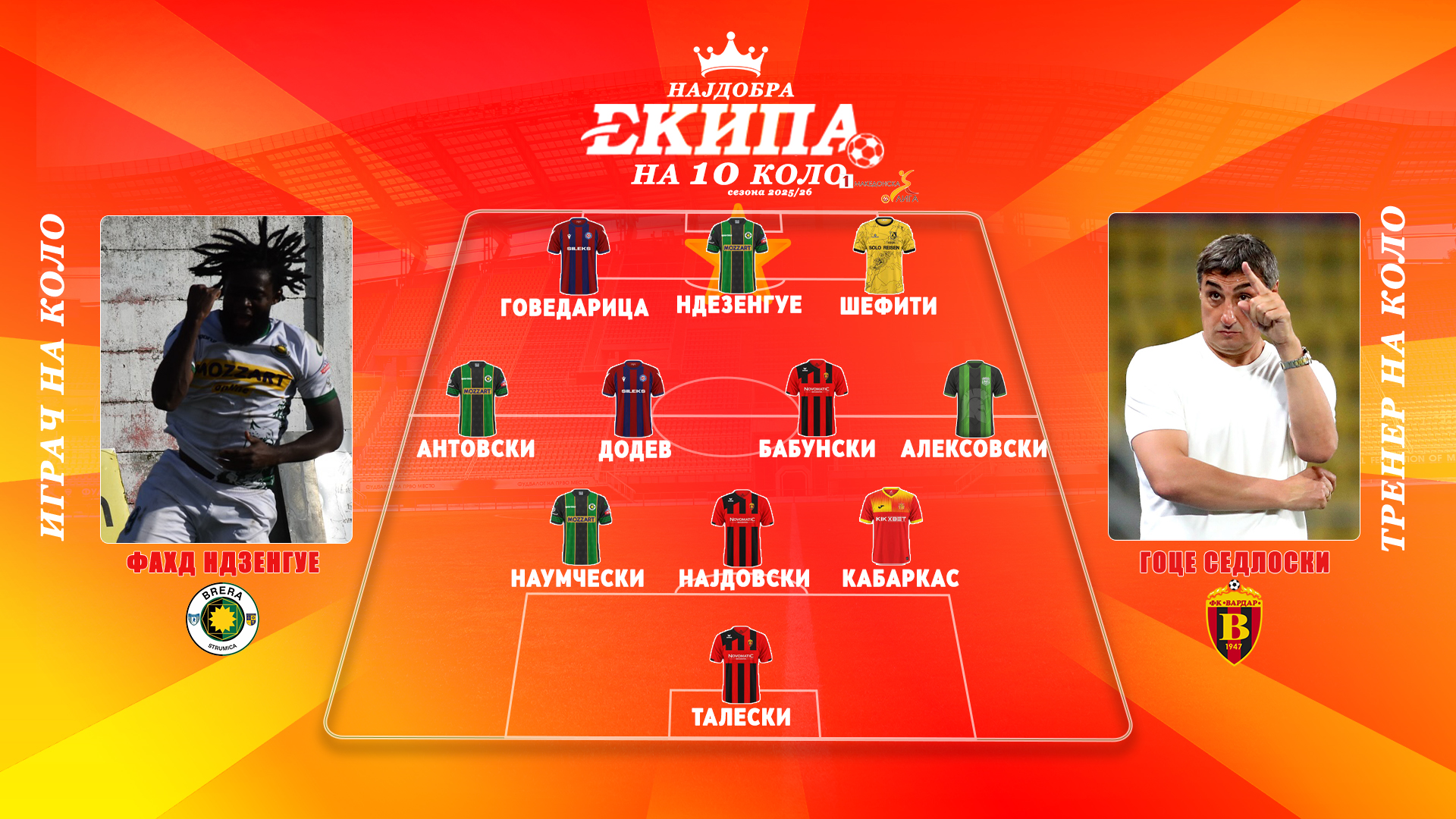 Фудбалерите на Вардар стигнаа до голема победа во борбата за титулата откако славеа на гостувањето кај Шкендија во Тетово со минимални 0-1 во дерби натпреварот на македонскиот фудбал. Тренерот на скопјани одлично го подготви својот тим за овој меч па затоа и заслужено е избран за тренер на колото.