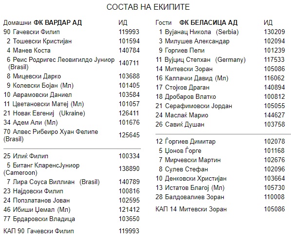 - Познати составите за дуелот Вардар – Беласица. „Црвено-црните“ во сите свои расположиви сили…