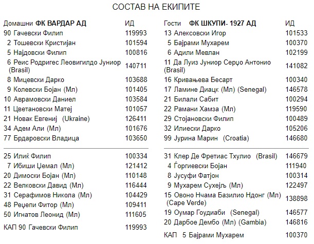 ВАРДАР – ШКУПИ (0-0)