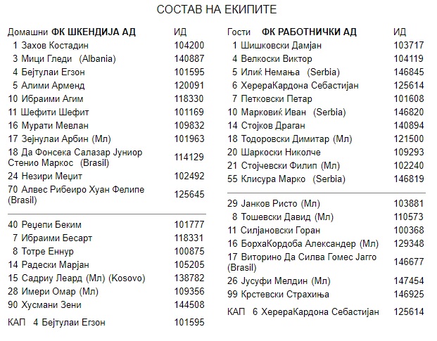 8′ – Прва одлична шанса за Шкендија. Шефити оддесно пред голот на Работнички го најде Жуниор, но во последен момент од 5-6 метри интервенира Шаркоски пред Жуниор