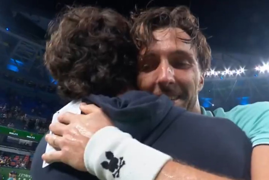 Valentin Vacherot is the first to step on court & congratulate Arthur Rinderknech as he joins him in the Shanghai final.