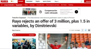 Како што пренесува „Марка“, Еспањол испратил понуда во вкупна висина од 4,5 милиони евра, со основа од три милиони евра и дополнителни бонуси за да го откупи договорот на Димитриевски. Но, Рајо сето тоа го одбил.