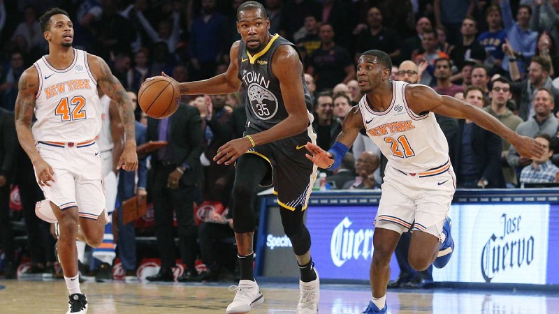 Голден стејт славеше на гостувањето против Њујорк со 100-128, убедлив триумф поради неверојатната последна четвртина што актуелниот шампион ја доби со неверојатни 16-47. Во главна улога во овие 12 минути беше Кевин Дурант, кој погоди десет од 13-те упатени шутеви, реализирајќи 25 поени надополнети со девет скока и пет асистенции. Тој го заврши мечот како најефикасен со 41 поен, пред Стеф Кари со 29 поени.