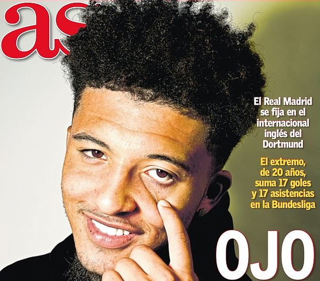 Реал Мадрид е заинтересиран за Џејдон Санчо, но нема пари за купување и се надева дека другите клубови заинтересирани нема да го грабнат набрзина. Ова е вест што во денешното издание ја пласира шпанскиот весник „АС“ кој на насловната страница има фотографија од Џејдон и текст „Внимавајте на Санчо“.