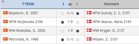 Дамите, пак, славеа убедливо со 3-1 против Данска. Победи запишаа Стојкоска и Коскоска, а ремизираа Бејатовиќ на првата и Катерина Петровска на четртата табла.
