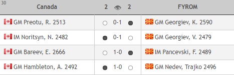 По двата претходни порази, македонските шахисти ремизираа (2-2) со селекцијата на Канада во 8. коло на 43. Олимпијада во Батуми, Грузија.