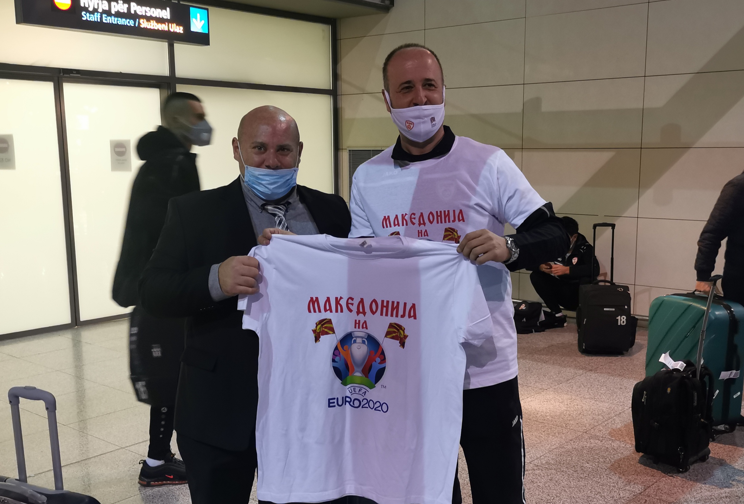 Македонските репрезентативци по историскиот пласман на ЕП, некаде околу 03 часот по полноќ со чартер летот на “Кроација ерлајнс” од Тбилиси слетаа на аеродромот во Приштина.