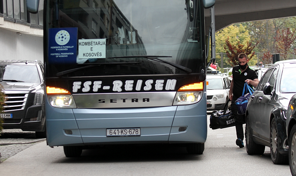 Репрезентацијата на Косово пристигна во Скопје во пресрет на утрешниот натпревар со Македонија од полуфиналето во плеј-од баражот за пласман на Европското првенство следната година.
