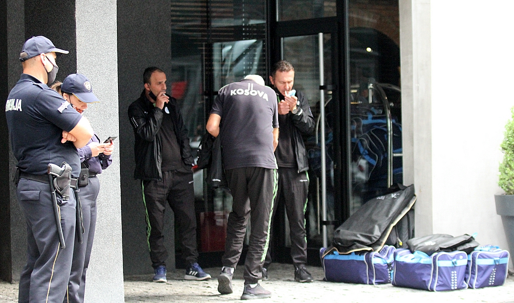 Под максимално полициски обезбедување селекцијата на северниот сосед пристигна во главниот град веднаш сместувајќи се во хотелот „Парк“ кој е дел од комплексот на националната арена „Тодор Проески“ во Скопје.