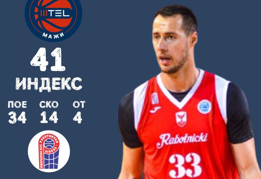 Искусниот крилен играч на МКК Куманово, одигра поголем број на минути, 38:11 на средбата со Ангели, во кои постигна 23.поени (со еден нереализиран обид од десет, и максимални 2/2 од линијата за слободни фрлања). Дополнети со шест скока, пет асистенции и три загубени топки, што збирно прави индекс 27.