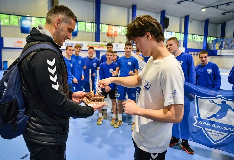 Лазаров утрово пристигна на тренингот на својот тим, каде беше изненаден од членовите на првата екипа, но и на младинските тимови на РК Алкалоид, кои со торта го пречекаа „шефот на струката“.