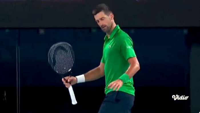 Ѓоковиќ, лут поради своја грешка, замавна по топчето по поенот, кое помина малку над главата на собирачот на топки крај мрежата.