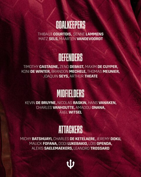 Селекторот на фудбалската репрезентација на Белгија, Руди Гарсија го објави списокот на фудбалери за октомврискиот циклус во квалификациите за Светското првенство 2026 во кој „црвените-ѓаволи“ ќе се сретнат и со Македонија.